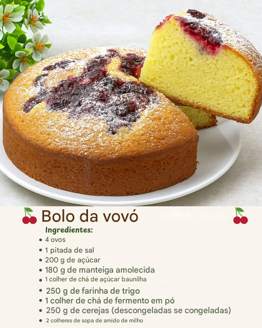 🍒 Bolo da Vovó 🍒 Um bolo clássico com cerejas que derrete na boca.